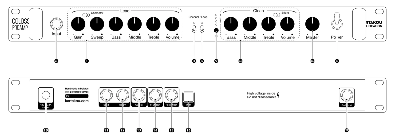 1️⃣3️⃣ Output - 1/4" TS выход для усилителя, звуковой карты и т.д.